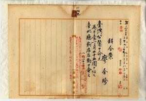 七三 警察本署長亀山理平太ノ内申ニヨリ民政部警察本署衛生課勤務ノ廖金珍ニ台湾公医ヲ命シ手当金トシテ一箇月二五円ヲ給シ台北庁新店在勤ヲ命ス