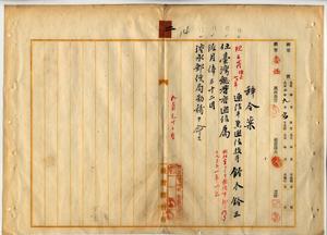 二 淡水郵便局長小野塚斧太郎ノ内申ニヨリ通信手兼通信技手鈴木鈴三ヲ台湾総督府通信属ニ任シ淡水郵便局勤務ヲ命ス