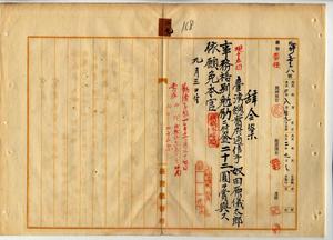 二九 脚気並ニマラリアニ罹リ職ニ堪エサル旨ヲ以テ辞職ヲ願出タル台湾総督府通信手奴田原儀太郎ヲ通信局長角源泉ノ内申ニヨリ事務格別勉励ニ付キ一時金ヲ賞与シ依願本官ヲ免ス