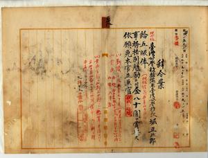 五八 新竹庁長家永泰吉郎ノ内申ニヨリ疾病ニ罹リ職ニ堪エサル旨ヲ以テ辞職ヲ願出タル月眉公学校校長台湾公学校教諭兼台湾公学校長堀正次郎ヲ昇級ノ上事務格別勉励ニ付キ一時金ヲ賞与シ依願本官並兼官ヲ免ス