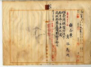 八三 殖産局長高田元治郎ノ具申ニヨリ鉱業ニ関スル技手ノ台湾総督府雇魚谷義次ヲ台湾総督府技手ニ任シ民政部殖産局勤務ヲ命ス