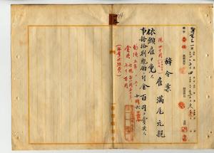 雇滿尾元親(雇ヲ免ス並ニ賞與ノ件)