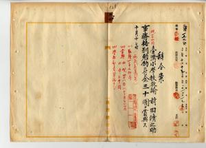 二四 台南庁長松木茂俊ノ判任官病気危篤者賞与内申ニヨリ病気危篤ニ陥リ一〇月一〇日死亡シタル台湾小学校教諭前田清之助ニ事務格別勉励ニ付キ一時金ヲ賞与ス