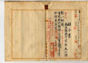 三一 脚気ニ罹リ職ニ堪エサル旨ヲ以テ辞職ヲ願出タル南投庁技手芝原太次郎ヲ昇級ノ上事務格別勉励ニ付キ一時金ヲ賞与シ依願本官ヲ免ス