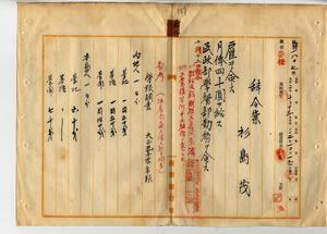 三二 学務部長代理小川尚義ノ内申ニヨリ広島県立職工学校板金工科卒業ノ杉島茂ニ雇ヲ命シ民政部学務部勤務ヲ命ス