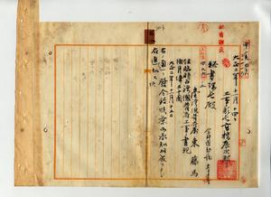 三一 工事部長高橋辰次郎ヨリ大正二年一一月一三日付ヲ以テ台湾総督府属東藤馬ヲ臨時台湾総督府工事書記ニ任シタル旨秘書課長ヘ通知ノ件