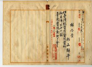 五二 台南医院長尾崎宰ノ内申ニヨリ私立東京慈恵会医院医学専門学校ヲ卒業シ台湾医業規則ニヨリ医業免許証ヲ取得シタル杉山謙平ヲ台湾総督府医院医師ニ任シ台南医院勤務ヲ命ス