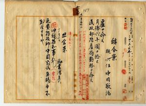 六五 殖産局長高田元治郎ノ具申ニヨリ移民農事ニ関スル技術ニ従事セシムル為メ札幌農学校卒業元沖縄県糖業試験場技師中目敬治ニ雇ヲ命シ民政部殖産局勤務ヲ命ス