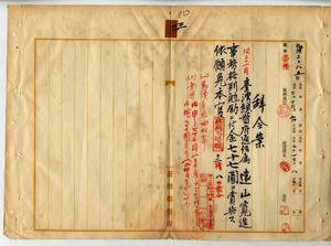 三 台湾総督府通信属遠山寛造ハ麻刺利亜ニ罹リ職ニ堪エサル旨ヲ以テ退官願ニヨリ事務格別勉励ニ付キ一時金ヲ賞与シ本官ヲ免ス