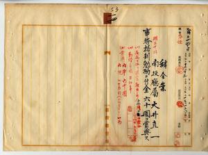 一四 南投庁長石橋亨ノ稟申ニヨリ疾病ノ為メ退職スル南投庁属大井直一ニ事務格別勉励ニ付キ一時金ヲ賞与ス