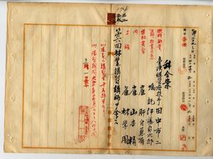 三二 殖産局長高田元治郎ノ内申ニヨリ台湾総督府技手田中市二、台湾総督府嘱託伊藤貞次郎、台湾総督府雇ノ肝付兼有・山本精・林学周ヲ第六回林業講習講師ニ命ス