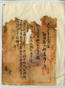二 阿緱庁公共埤圳枋山埤管理者阿緱庁長佐藤謙太郎ヨリ大正二年□月□日付阿緱鎌聯第二〇六〇号ヲ以テ申請ノ公共埤圳枋山埤ヲ組合組織ト為シ明治三九年八月三一日台湾総督府指令第二五九九号認可ニ係ル公共埤圳枋山埤規約ヲ改正スルノ件ニ付指令第一八六号ヲ以テ、又阿緱庁公共埤圳莿桐脚埤管理者阿緱庁長佐藤謙太郎ヨリ大正二年一一月二八日付阿緱聯第二〇六一号ヲ以テ申請ノ公共埤圳莿桐脚埤ヲ組合組織ト為シ明治三九年八月三一日台湾総督府指令第二五九七号認可ニ係ル公共埤圳莿桐脚埤規約ヲ改正スルノ件ニ付指令第[破損]号ヲ以テ、並ニ阿緱庁公共埤圳加禄堂埤管理者阿緱庁長佐藤謙太郎ヨリ大正二年一一月二八日付阿埤聯第二〇五九号ヲ以テ申請ノ公共埤圳加禄堂埤ヲ組合組織ト為シ明治三九年八月三一日台湾総督府指令第二五九八号認可ニ係ル公共埤圳加禄堂埤規約ヲ改正スルノ件指令第一八□号ヲ以テ夫々認可ス