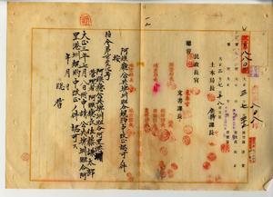 〔阿緱廳公共埤圳組合規約中改正認可ノ件〕