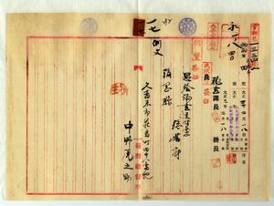 一七 マラリアニ罹リ退官シタル元台東庁属中屋虎之助ヘ恩給証書下付ノ件(官秘第一三三四号)元台東庁属中野虎之助ヨリ恩給請求書ヲ差出タルニ付キ台東庁長能勢靖一ヨリ恩給請求書進達ノ件(官秘第一一二四号)
