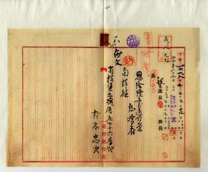 一八 元臨時台湾糖務局技手村木忠次ノ恩給請求ニ付キ恩給証書送付ノ件(官秘第一六九八号)