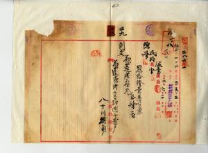 二九 麻剌利亜ニ罹リ退官シタル元台湾総督府鉄道部書記八十川麒角ニ恩給証書送付ノ件(官秘第三八六号)[破損]麻剌利亜ニ罹リ退官シタル元台湾総督府通信属岩本重美ノ恩給請求ニ依リ本人ヘ恩給証書送付ノ件(破損の為不明)
