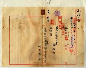 一六 慢性麻剌利亜ニ罹リ退官シタル元台湾総督府鉄道部技手竹田勢三ニ恩給証書送付ノ件(官秘第六三九号)