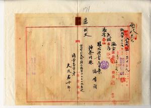 二三 慢性マラリヤニ罹リ退官シタル元嘉義庁警部大澤嘉十郎ニ恩給証書送付ノ件(官秘第八五七号)