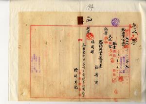 二四 麻刺里亜兼脚気ニ罹リ退官シタル元嘉義庁属淡河安記ニ恩給証書送付ノ件(官秘第八五八号)