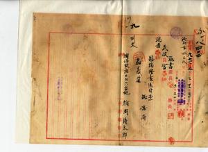 九 麻剌利亜脚気ニ罹リ退官シタル元台湾総督府阿里山作業所書記楯岡鍾太郎ニ恩給証書送付ノ件(官秘第九七七号)
