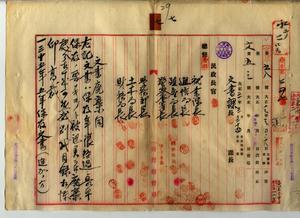 七 明治三五年五年保存文書(追加ノ分)中第二門官規官職ノ第四類進退、第七門土地家屋ノ第八類売買貸借及交換、第一二門殖産ノ第七類鉱業、第一五門会計ノ第六類物品会計、第一七門教育学術ノ第四類教員生徒、第一八門交通ノ第二類小包及為替貯金・第三類集配逓送・第四類電信・第五類電話・第一四類雑、第一九門土木工事ノ第四類水道下水中ノ各文書ヲ廃棄スルノ件(官文第五八号)