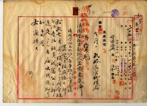 四 清国労働者取扱人台華殖民合資会社業務担当社員後藤猛太郎死亡ニ付キ其ノ後任者トシテ同会社無限責任社員成富公三郎ヲ選定シタル旨同会社ヨリ届出ノ件(民警第一二七号)