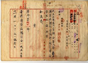 二 台湾伝染病予防令制定ノ件(律令第八号・民警第五四二号)二-一 大正三年五月律令第八号台湾伝染病予防令施行ニ関スル府令制定ノ件(府令第七一号)
