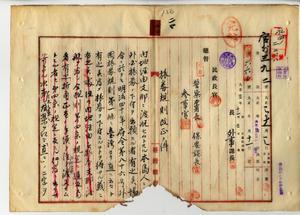二〇 桃園庁ノ照会ヨリ本島人ニシテ支那国厦門ニ旅行センガ為メ旅券下付ヲ願出タル者ノ内本島ヨリ先ツ内地東京ヘ到り内地ヨリ厦門ニ至ラントスルモノアルニヨリ旅券規則ヲ改正シ明治四〇年一〇月府令第八六号外国旅券規則第一条中「直ニ」ヲ削除ス(府令第七七号・官外第三九二号)