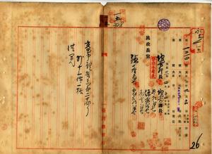 一五 台中庁・嘉義庁・台南庁ノ告示供閲ノ件(民地第一二一四号)一五-一 台中庁告示第二四号 台中庁藍興堡台中街貸座敷営業高砂楼コト田中藤太郎ハ公安ヲ害スル行為アリシヲ以テ貸座敷及娼妓取締規則第三一条ニ依リ営業停止ノ件一五-二 台中庁告示第二五号 台中庁下ノ三輪松次郎ハ獣猟免状ヲ紛失ニ付キ無効トス一五-三 台中庁告示第二六号 台中庁下ニ豕虎列刺発生ノ件一五-四 台中庁告示第二七号 嘉義庁下ニ牛疫流行地ト認メ牛羊属ノ出入並病毒伝播ノ虞アル物品搬出入ヲ禁止中ノ処該疫既ニ終熄ニ付キ遮断解除ノ旨通知ノ件一五-五 台中庁告示第二八号 台中庁下ノ黄明ト林小讃ハ船鑑札紛失ニ付キ無効ノ旨宜蘭庁ヨリ通知ノ件一五-六 台中庁告示第二九号 台中庁燕霧下堡員林街ト捒東上堡東勢角庄ニマラリア防遏方法ヲ施行スルノ件一五-七 台中庁告示第三〇号 明治四三年六月台中庁告示第一四九号支庁掌理事項並支庁長委任事項中追加ノ件一五-八 台中庁告示第三一号 台中庁下ニ牛気腫疽ト豚虎列刺発生ノ件一五-九 台中庁告示第三二号 台中庁下ニ牛疫発生ノ件一五-一〇 台中庁告示第三三号 台中庁下ニ牛疫流行地ト認メ台湾獣疫予防規則第八条ニ依リ牛羊属ノ出入往来病毒伝播ノ虞アル物品ノ搬出入ヲ禁止スルノ件一五-一一 台中庁告示第三四号 台中庁下ニ牛疫発生シ病毒伝播ノ虞アルヲ以テ牛墟ノ開場ヲ中止スルノ件一五-一二 台中庁告示第三五号 台中庁下ノ林炳文ハ船鑑札紛失ニ付キ無効ノ件一五-一三 嘉義庁告示第二三号 嘉義庁下ニ牛疫ト豚虎列刺発生ノ件一五-一四 台南庁告示第四五号 台南市及ヒ効忠里安平街ト大竹里打狗ニ臨時消毒的清潔法ヲ施行スルノ件一五-一五 台南庁告示第四六号 嘉義庁下ニ牛疫・狂犬病・豚虎列刺発生及ヒ阿緱庁ニ牛疫・牛流行性鵞口瘡発生ノ件