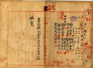 二一 台北庁・桃園庁・宜蘭庁ノ訓令供閲ノ件(民地第一四四〇号)二一-一 台北庁訓令第五号 明治四四年一二月台北庁訓令第三二号区長報告例別冊中改正ノ件二一-二 台北庁訓令第六号 大正元年一〇月台北庁訓令第四号支庁長委任事項中改正ノ件二一-三 台北庁訓令第七号 明治四三年五月台北庁訓令第二五号害虫巡視員旅費支給規程中改正ノ件二一-四 台北庁訓令第八号 大正二年七月台北庁訓令第一八号第二号表中小使給区別ノ欄中削除ノ件二一-五 桃園庁訓令第二号 大正二年七月桃園庁訓令第八号判任官各官定員中改正ノ件二一-六 桃園庁訓令第三号 大正二年七月桃園庁訓令第九号各課各支庁判任官配置定員中改正ノ件二一-七 桃園庁訓令第四号 明治四三年一〇月桃園庁訓令第二五号支庁掌理事項中改正ノ件二一-八 桃園庁訓令第五号 明治四二年一二月桃園庁訓令第二二号警察官吏監視区域中改正ノ件二一-九 桃園庁訓令第六号 大正二年一二月桃園庁訓令第二〇号警察職員旅費規程第三条ニ依ル月額旅費等級中改正ノ件二一-一〇 桃園庁訓令第七号 大正二年七月桃園庁訓令第八号判任官各官定員中改正ノ件二一-一一 桃園庁訓令第八号 大正二年七月桃園庁訓令第九号各課各支庁判任官配置定員中改正ノ件二一-一二 宜蘭庁訓令第一四号 轎営業及轎夫取締規則取扱手続制定ノ件二一-一三 宜蘭庁訓令第一五号 統計講習員管内出張旅費規程制定ノ件二一-一四 宜蘭庁訓令第一六号 明治四二年七月宜蘭庁訓令第八号警察費支弁ニ属スル支庁以下薪炭油費及小使給払切規程ニ依ル薪炭油費及小使給月額ニ付キ改正ノ件二一-一五 宜蘭庁訓令第一七号 大正二年一一月宜蘭庁訓令第三五号宜蘭庁警察報告例別冊中改正ノ件