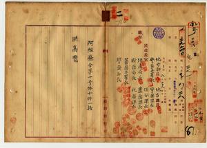 一一 阿緱庁・台東庁・花蓮港庁・澎湖庁ノ庁令供閲ノ件(民地第二九六〇号)一一-一 阿緱庁令第一〇号 大正元年一〇月牛畜移動取締規則中改正ノ件一一-二 阿緱庁令第一一号 台湾害虫駆除予防規則第三条ニ依リ甘蔗ノ害虫駆除予防施行期限駆除予防スヘキ害虫ノ種類及其地域制定ノ件一一-三 阿緱庁令第一二号 明治四五年三月庁令第七号蕃人ト物品交換取締規則施行細則中改正ノ件一一-四 阿緱庁令第一三号 明治四一年律令第一四号台湾害虫駆除予防規則第三条ニ依リ本年第二期稲作苗代及本田ニ於テ駆除予防スヘキ害虫ノ種類及施行期限制定ノ件一一-五 阿緱庁令第一四号 大正三年一月庁令第一号甘蔗露菌病「カンシヨノツユカビ病」駆除予防施行区域中追加ノ件一一-六 阿緱庁令第一五号 大正三年五月庁令第一一号甘蔗害虫駆除予防施行期限延期ノ件一一-七 阿緱庁令第一六号 明治三七年三月庁令第四号保甲条例施行細則第一〇条保正ノ職務中追加ノ件一一-八 台東庁令第三号 台湾地方税規則施行細則制定ノ件並ニ明治四〇年七月台東庁令第六号台湾地方税規則施行細則、明治三六年五月台東庁令第七号地方税調査委員規則及明治三六年七月台東庁令第一一号地方税監視規則ヲ廃止ス一一-九 花蓮港庁令第七号 蕃人公学校教授ノ程度及毎週教授時数制定ノ件一一-一〇 澎湖庁令第三号 明治四一年四月澎湖庁令第三号台湾地方税規則施行細則中改正ノ件一一-一一 澎湖庁令第四号 明治三七年五月澎湖庁令第三号保甲条例施行細則第一〇条ニ追加ノ件
