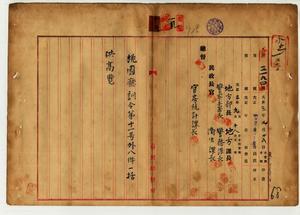 一九 桃園庁・新竹庁・台中庁ノ訓令供閲ノ件(民地第三一九四号)一九-一 桃園庁訓令第一一号 明治四三年一〇月訓令第二六号支庁長委任事項中改正ノ件一九-二 桃園庁訓令第一五号 大正二年七月訓令第八号判任官各官定員中改正ノ件一九-三 桃園庁訓令第一六号 大正二年七月訓令第九号各課各支庁判任官各官配置定員中改正ノ件一九-四 桃園庁訓令第一七号 支庁警察官吏派出所薪炭油費小使給及警察官吏駐在所蕃務官吏駐在所並ニ隘勇監督駐在所隘勇監督分遣所薪炭油費ハ月額払切トスルノ件並ニ大正二年八月訓令第一二号ハ廃止ス一九-五 桃園庁訓令第一八号 明治三九年四月訓令第一六号墓地火葬場及埋火葬取締規則取扱手続改正ノ件一九-六 新竹庁訓令第一五号 大正二年六月新竹庁訓令第一七号新竹庁判任官各官定員中改正ノ件一九-七 台中庁訓令第一六号 大正二年七月台中庁訓令第一一号判任官各官定員中改正ノ件一九-八 台中庁訓令第一七号 大正三年七月台中庁訓令第一五号台中庁報告例別冊中改正ノ件一九-九 台中庁訓令第一八号 大正二年七月台中庁訓令第一一号判任官各官定員中改正ノ件