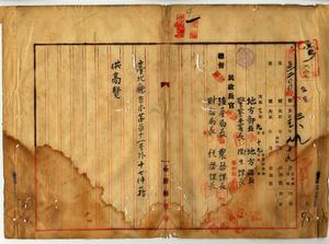 一 台北庁・宜蘭庁・新竹庁ノ告示供閲ノ件(民地第三二〇〇号)一-一 台北庁告示第一一一号 台北庁下ニ牛炭疽ト豕虎列刺発生ノ件一-二 台北庁告示第一一二号 桃園庁下ニ豕虎列刺発生ニ付キ同庁ヨリ通報ノ件一-三 台北庁告示第一一三号 台北庁下ノ自転車鑑札亡失ニ付キ無効ノ件一-四 台北庁告示第一一四号 台北庁下ニ豕虎列刺発生ノ件一-五 台北庁告示第一一五号 台湾阿片令施行規則第四〇条ニ依リ台北庁下ノ洪沢水ノ阿片煙膏請売業ヲ禁止スルノ件一-六 台北庁告示第一一六号 台北庁下ノ自転車鑑札亡失ニ付キ無効ノ件一-七 台北庁告示第一一七号 台北庁下ニ豕虎列刺発生ノ件一-八 台北庁告示第一一八号 桃園庁下ニ豕虎列刺発生ニ付キ同庁ヨリ通知ノ件一-九 台北庁告示第一一九号 陸地測量部ニ於テ土地測量ノ旨通知ノ件一-一〇 台北庁告示第一二〇号 印紙税法第一〇条ニ依リ印紙ヲ貼附スヘキ証書帳簿ノ検査執行ノ件一-一一 台北庁告示第一二一号 台北庁下ニ豕虎列刺発生ノ件一-一二 宜蘭庁告示第五八号 宜蘭庁下ノ黄坤ト廖阿斗ハ船鑑札流失ニ付キ無効ノ件一-一三 宜蘭庁告示第五九号 宜蘭庁下ノ巌秀ハ煙草小売行商営業鑑札ヲ、王式金ハ獣肉販売営業許可証ヲ紛失ニ付キ無効ノ件一-一四 宜蘭庁告示第六〇号 台北庁下ニ豚虎列刺ト牛炭疽発生ニ付キ通知ノ件一-一五 宜蘭庁告示第六一号 阿緱庁下ノ墓地ニ於テ土地ノ変状ニ依リ整理ノ必要ノ為メ改葬ノ件一-一六 新竹庁告示第一二四号 新竹庁下ニ豚虎列刺ト牛気腫疽発生ノ件一-一七 新竹庁告示第一二五号 台北庁下ニ豚虎列刺発生、台中庁下ニ牛気腫疽発生ニ付キ通知ノ件一-一八 新竹庁告示第一二六号 新竹庁下ノ蔡清賢・陳氏根・呉江海・張阿送・彭永発・頼木古ハ阿片煙膏購買吸食特許鑑札ト阿片煙膏購買通帳ヲ、陳楚・彭氏掽ハ阿片煙膏購買吸食特許鑑札ヲ、謝見成・余査某・劉阿助・王淵輝ハ阿片煙膏購買通帳ヲ亡失ニ付キ無効ノ件