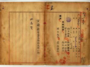二五 宜蘭庁・新竹庁・嘉義庁ノ庁令供閲ノ件(民地第三七八〇号)二五-一 宜蘭庁令第九号 種牡豚取締規則制定ノ件二五-二 新竹庁令第三号 諸営業願出ニ関スル規則制定ノ件並ニ明治三九年一〇月新竹庁令第一八号ハ廃止ス二五-三 嘉義庁令第三号 大正三年八月府令第四五号宿屋営業取締規則第一三条第三号第四号ハ嘉義市街以外ノ地ニ施行スルノ件二五-四 嘉義庁令第二号 明治三六年九月嘉義庁令第一三号保甲規約標準中改正ノ件二五-五 嘉義庁令第五号 明治三五年九月嘉義庁令第一二号公私立病院及医院ノ設置ニ関スル規則中改正ノ件二五-六 嘉義庁令第六号 明治三七年一一月嘉義庁令第一四号伝染病ノ為メ消毒的清潔法施行ニ関スル規則中改正ノ件二五-七 嘉義庁令第七号 台湾汚物掃除規則施行地域制定ノ件並ニ明治三八年五月嘉義庁令第三号ヲ廃止ス二五-八 嘉義庁令第八号 明治三九年一二月斗六庁令第二八号清潔法施行規則ハ当庁管内ニ於テ効力ヲ失フノ件二五-九 嘉義庁令第九号 明治三五年九月嘉義庁令第一二号公私立病院及医院ノ設置ニ関スル規則・明治三七年一一月嘉義庁令第一四号伝染病予防ノ為消毒的清潔法施行ニ関スル規則・明治四二年四月嘉義庁令第三号台湾薬剤師薬種商製薬者取締規則施行細則・明治四二年四月嘉義庁令第四号公共営造物管理規程ハ当庁管内ニ於テ施行ノ件二五-一〇 花蓮港庁令第九号 外太魯閣新城及内太魯閣タウサイ合流点ニ支庁ヲ設置シ其ノ名称位置管轄区域制定ノ件二五-一一 澎湖庁令第六号 明治三九年二月澎湖庁令第二号ヲ廃止スルノ件