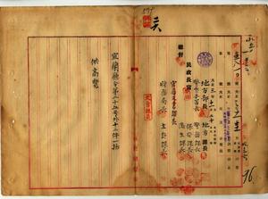 二六 宜蘭庁・嘉義庁・台南庁・阿緱庁・花蓮港庁・澎湖庁ノ訓令供閲ノ件(民地第三八一〇号)二六-一 宜蘭庁訓令第二五号 宜蘭庁記録保存規程制定ノ件並ニ明治三八年七月宜蘭庁訓令第三〇号ヲ廃止ス二六-二 宜蘭庁訓令第二六号 明治四三年一一月宜蘭庁訓令第二九号支庁長委任事項中改正ノ件二六-三 嘉義庁訓令第一九号 明治四三年六月嘉義庁訓令第二七号支庁長委任事項中改正ノ件二六-四 台南庁訓令第九号 明治三四年七月台南庁訓令第二九号人力車取締規則取扱心得中改正ノ件二六-五 阿緱庁訓令第二三号 大正二年七月訓令第二三号本庁判任各官定員並課支庁配置定員中改正ノ件二六-六 花蓮港庁訓令第二八号 大正元年一〇月花蓮港庁訓令第三号隘勇監督所以下名称及担任区域改正ノ件二六-七 花蓮港庁訓令第二九号 大正三年二月花蓮港庁訓令第三号警察監視区域中改正ノ件二六-八 花蓮港庁訓令第三〇号 本庁判任官各官配置定員制定ノ件二六-九 花蓮港庁訓令第三一号 支庁掌理事項制定ノ件並ニ明治四三年八月花蓮港庁訓令第二七号ヲ廃止ス二六-一〇 花蓮港庁長飯田章ヨリノ大正三年九月花蓮港庁訓令第三〇号支庁掌理事項ハ花蓮港庁訓令第三一号ノ誤植ノ旨報告ノ件二六-一一 花蓮港庁訓令第三二号 支庁長委任事項制定ノ件並ニ明治四三年八月花蓮港庁訓令第二八号ヲ廃止ノ件二六-一二 澎湖庁訓令第九号 当庁課及支庁判任官定員制定ノ件二六-一三 澎湖庁訓令第一〇号 明治四三年七月澎湖庁訓令第五号支庁委任事項追加ノ件二六-一四 澎湖庁訓令第一一号 明治四〇年九月澎湖庁訓令第二七号犯罪即決例ニ依ル仮納金取扱手続改正ノ件二六-一五 澎湖庁訓令第一二号 明治四二年三月澎湖庁訓令第一一号台湾歳入取扱手続中改正ノ件