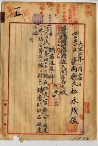 一五 打狗市場屠畜場管理者台南庁長松木茂俊ヨリ出願ノ台南庁大竹里三塊厝庄ノ河埔ヲ打狗屠畜場敷地トシテ使用ニ付キ官有地無料使用ノ件(指令第三六号・民地第四二五〇号)