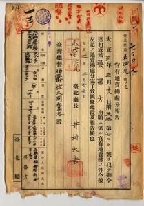 一三 台北庁大加蚋堡下崁庄ノ官有地ヲ大加蚋堡艋舺頂新街ノ呉昌才ヘ官有地売払処分報告ノ件(民地第七〇〇号)