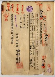 一三 花蓮港庁蓮郷花蓮港街ノ官有原野ヲ花蓮港街陳阿木ヘ官有地予約売渡処分報告ノ件(民地第九五九号・指令第一一〇八一号)