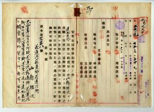 九 花蓮港庁蓮郷花蓮港街稲住ノ山形桂次ヨリ出願ノ同庁同街官有地原野ノ建物敷地ニ開墾予約貸付ニ付キ許可ノ件(指令第二九五五八号・民地第三六一九号)