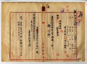 六 台北稲荷神社委員総代伊藤欣造ノ推薦ト台北庁長加福豊次ノ副申ニヨリ台北稲荷神社々掌ニ愛媛県士族官幣大社台湾神社主典鈴村謙ヲ同社社掌ニ補職ノ件(民地第三七四四号)