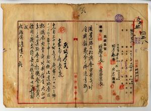八 台南庁長松木茂俊ノ禀申ニヨル大正元年一一月一日付指令第一〇三二号ヲ以テ認可サレタル御遺跡及招魂祭典費ノ剰余金ヲ大正四年ノ同祭典費ニ充当スルノ件支障ナキニ依リ了知ノ旨通達ス(民地第三九三八号)