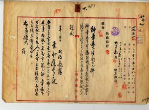 六 台北庁大加蚋艋舺布埔街ノ王万生ヨリ紳章遺失シタルニヨリ再下付ヲ願出タルニヨリ紳章再下付ノ件(民地第一七三一号)