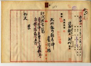 一〇 台湾総督府臨時法院検察官土屋達太郎ヨリ匪徒刑罰令違反被告事件トシテ大正二年一二月二九日臨時法院ニ於テ言渡シタル盧阿坊ヘノ死刑ノ判決執行方ノ具申ニ対シ在苗栗臨時法院検察官ヘ死刑執行ヲ命令スルノ件並ニ同検察官ヨリ台北監獄ニテ同日執行シタル旨報告ノ件(民法第六〇四号)