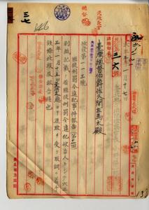 三七 台北地方法院検察官長小野得一郎ヨリ匪徒刑罰令違反被告人トシテ大正三年一月一五日三叉河支庁ヨリ送致サレタル頼九窓・頼九溝・頼双皇・黄阿金・李金薗・陳阿乾・陳阿基・陳火施・頼九桂・頼九梅・頼復育・古癸官・古申官・邱阿秋・李阿保・李進賢・阿紅春・李懋郎ノ取調ニ着手シタル旨報告ノ件(民法第三六号)
