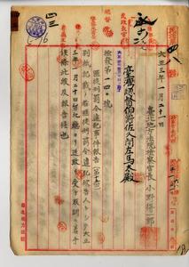 四三 台北地方法院検察官長小野得一郎ヨリ匪徒刑罰令違反被告人トシテ大正三年一月二〇日台北庁ヨリ送致サレタル陳清江・王国定・黄江柳・謝錦榜・謝錦標・黄鳥蚶・林火生・黄有財・陳山ノ取調ニ着手シタル旨報告ノ件(民法第四八号)