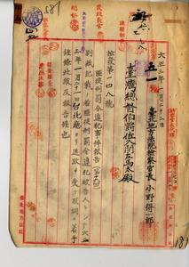 四五 台北地方法院検察官長小野得一郎ヨリ匪徒刑罰令違反被告人トシテ大正三年一月二一日台北庁ヨリ送致サレタル高愈・陳天送・蔡晩冬ノ取調ニ着手シタル旨報告ノ件(民法第五一号)