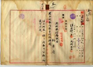 一五 大正三年五月二八日強盗殺人罪ニヨリ台南地方法院ニ於テ死刑ノ判決ヲ受ケタ楊来詹ノ死刑執行ニ関スルノ件(指令第一七五四七号・民法第三七四号)