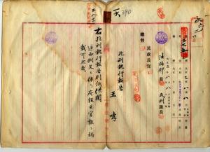 一六 大正三年五月二八日強盗殺人罪ニヨリ台南地方法院ニ於テ死刑ノ判決ヲ受ケタ王哮ノ死刑執行ニ関スルノ件(指令第一七五四六号・民法第三七五号)
