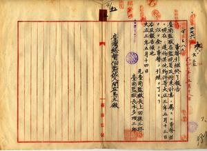 五 元台南監獄長上田孫三郎ト台南監獄長本多理三郎ヨリ台南監獄在監現員及将来計画ニ属スル事務並ニ現在ノ建物其他物件等引継終了シタルニ付キ報告ノ件(民法第二七六号)