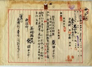 二 長崎県小学校専科(裁縫科)正教員免許ヲ有スル柴田チクサヨリ小学校教員無試験検定願ニ付キ教員免許状授与ノ件(民学第一八八五号)